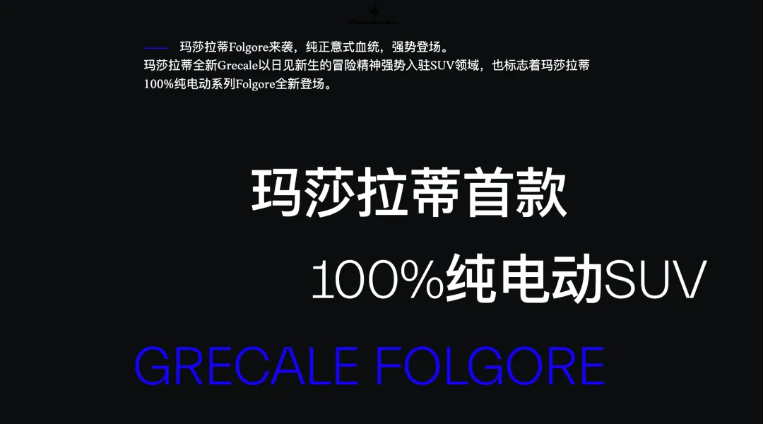 从指导价来看,玛莎拉蒂Grecale Folgore对标保时捷Macan纯电版,但经销商降价后,该款车型进入30~40万级别新能源SUV竞争圈,几乎与小米、蔚来、理想、问界等造车新势力同台竞技。