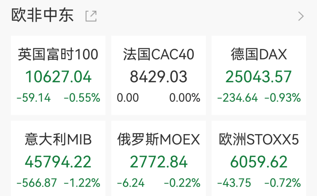 2月19日,欧美股市全线收跌。科技股下跌拖累美股,金融股砸盘,截至收盘道指跌0.54%跌幅超260点,标普500指数跌0.28%,纳指跌0.31%。欧洲斯托克600指数收跌0.53%,跌落周三刷新的收盘最高纪录。