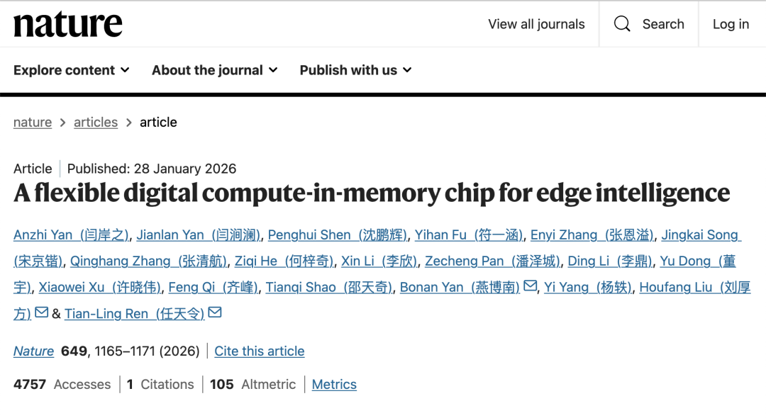 当前可穿戴设备、柔性机器人等应用呼唤轻量、可弯曲、高能效的端侧AI芯片,但传统硅基芯片难以适配曲面形态,现有柔性方案(通过硬质芯片嵌入软质基底实现一定的可挠性)又受限于集成度、灵活性与功耗等多重因素。FLEXI芯片采用存算一体架构,兼顾超薄、柔性及超高能效,为柔性智能硬件产业化提供关键技术支撑。