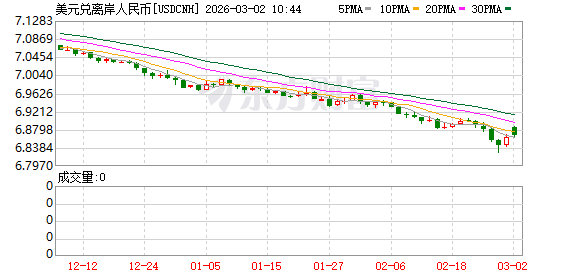 人民币对美元汇率节后快速升值,在岸、离岸重返三年前高位。2月25日至26日,人民币汇率加速上行,在岸、离岸人民币先后突破6.87、6.84关口,离岸人民币于26日最高触及6.82665,创下2023年4月以来新高。